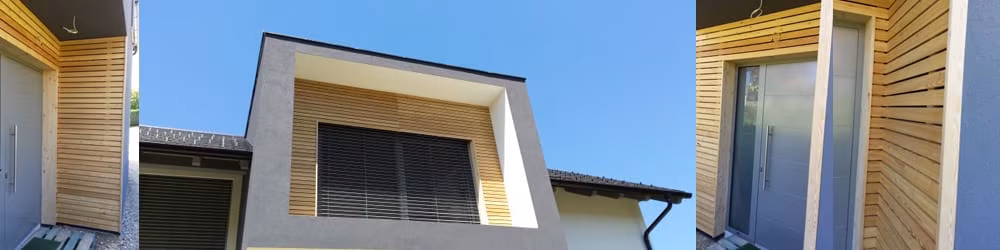 Na projektu, ki ga predstavljamo je prezračevana lesena fasada iz sibirskega macesna, fasada je premazana z zaščitnim oljem, saj bo tako les bolj enakomerno dobival srebrno sivo patino.Sprememba barve je naraven proces, ki ne vpliva na kakovost ali trajnost lesene…