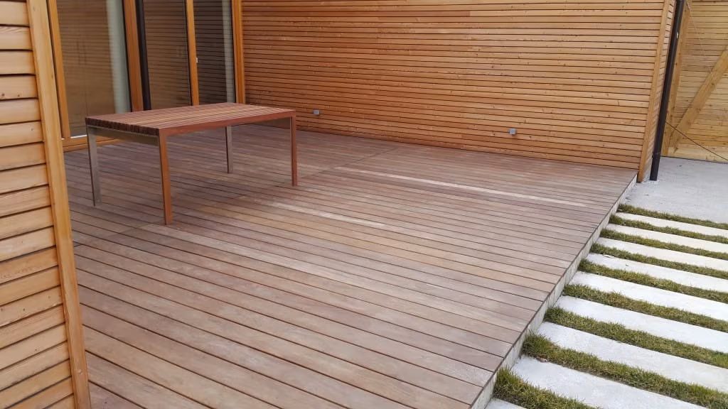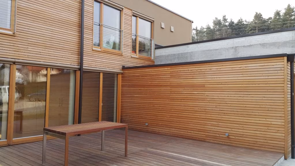 Predstavljeni projekt smo izvedli v mariboru. Lesena fasada je narejena na alu sidra, ki preprečujejo toplotne mostove klasične izvedbe, pa tudi izvedba je hitrejša in cenejša. Leseno teraso smo izvedli iz tropskega lesa cumaru, ki je eden redkih, ki se dobro obnaša v naših klimatskih pogojih. Terasa je bila izvedena zlastnim klip lpx 185 nevidnim sistemom pritrjevanja, in sicer z gladkimi podnicami