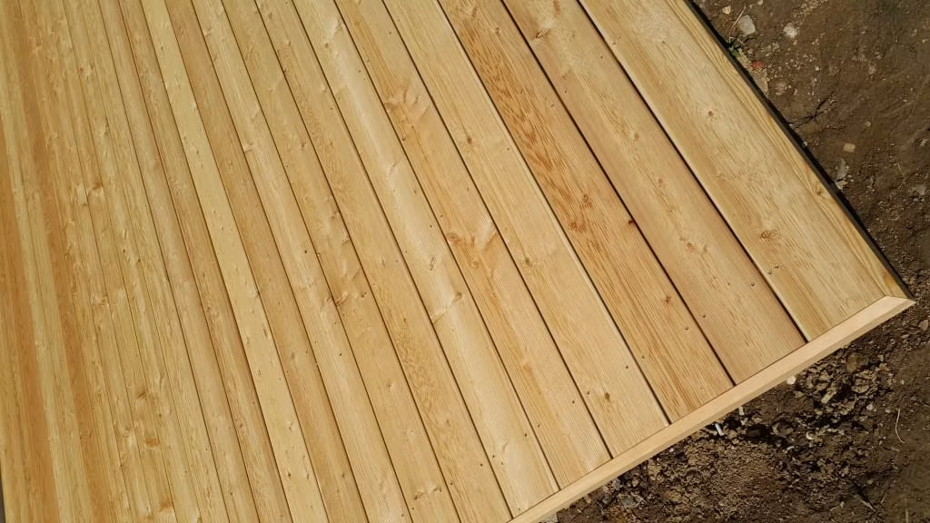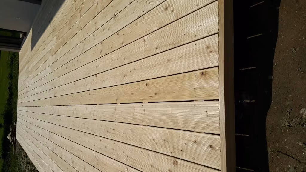 Tokratni projekt, ki ga predstavljamo je lesena terasa iz sibirskega macesna, vidno vijačena s solida namenskimi vijaki. Terasa je položena s točkovnimi temelji v pralni pesek. Ta način izvedbe znatno poceni pripravo terena, prav tako v kolikor bi si investitor v prihodnosti premislil teraso enostavno odstranimo, saj pod njo ni betonske plošče. Terasa je zoljena z osmo oljem.