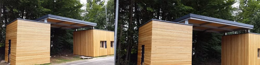 Na projektu, ki ga predstavljamo je prezračevana lesena fasada iz sibirskega macesna, fasada je premazana z zaščitnim oljem, saj bo tako les bolj enakomerno dobival srebrno sivo patino.Sprememba barve je naraven proces, ki ne vpliva na kakovost ali trajnost lesene…